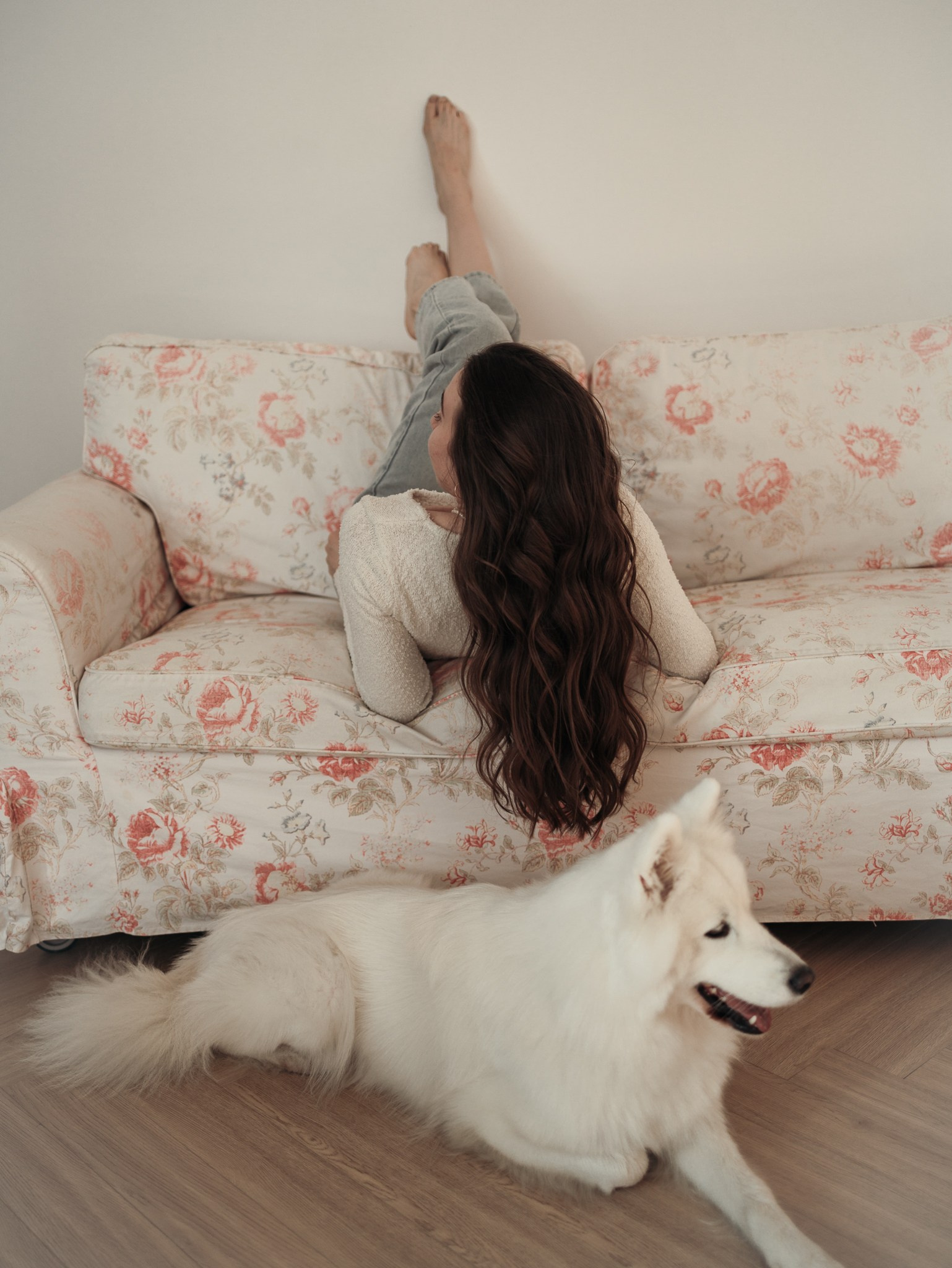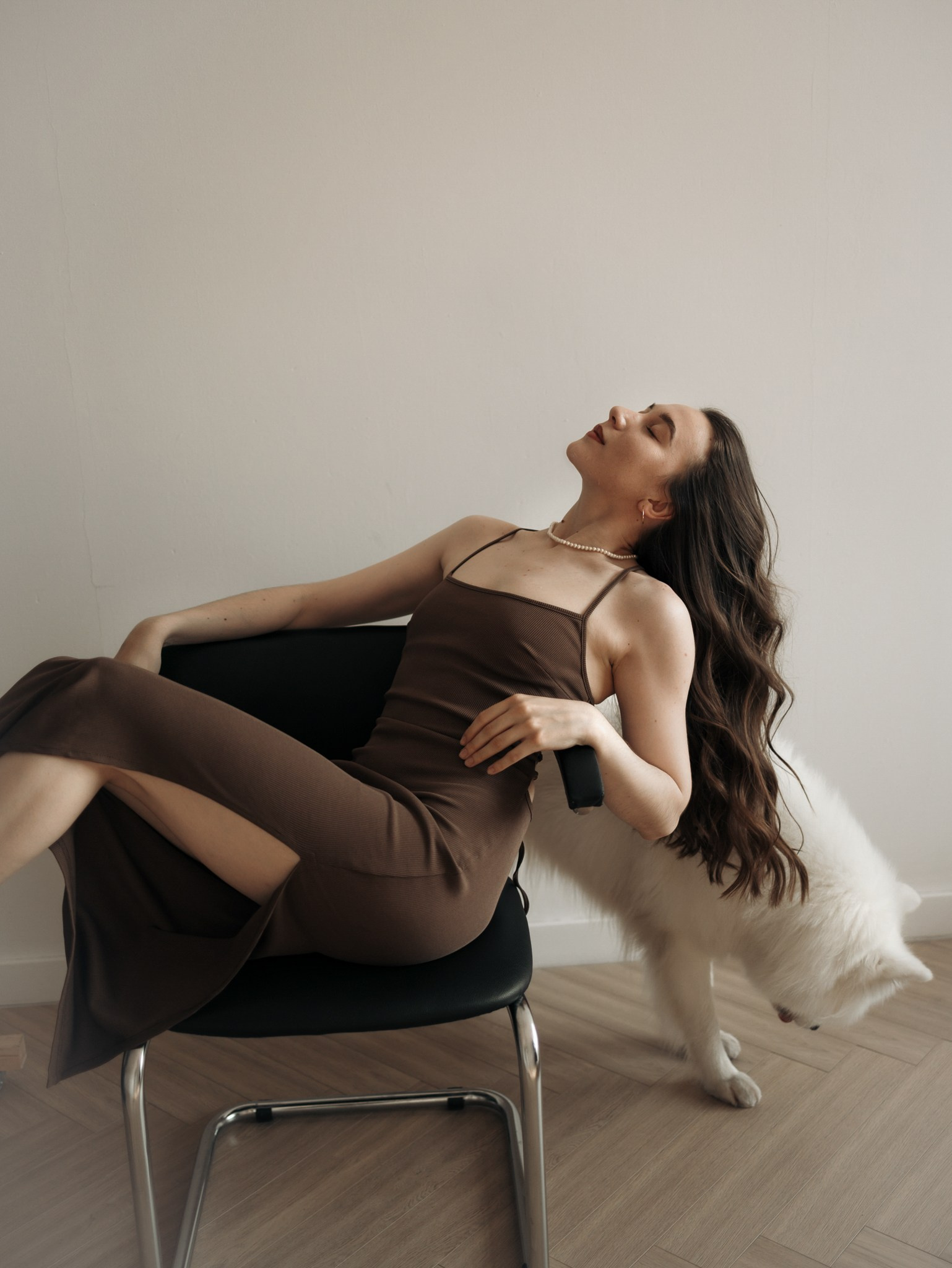 Лиза прислала референсы с летящими тканями, мы воплотили её идею на белой циклораме с помощью стоек, белой ткани,...
